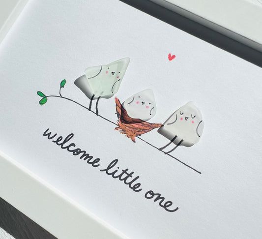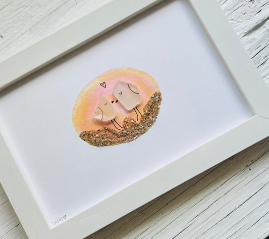 Tranquil Turtle Sea Glass Art | 8"x10" Shadow Box Frame